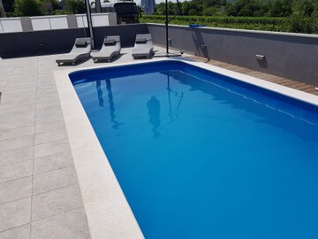 A sarokíves kialakítás eleganciát és exkluzivitást kölcsönöz a medencének, ami tökéletes választás azok számára, akik szeretnének valami különlegeset és modernet.
